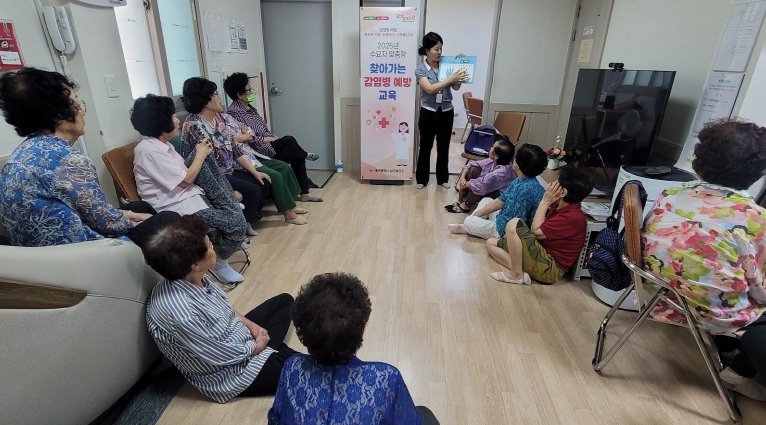 이번 교육은 보건소 역학조사관이 직접 경로당을 방문하여 진행하는 방식으로 생활 현장에서 바로 실천할 수 있는 감염병 예방 활동을 유도하는 데 목적이 있다.