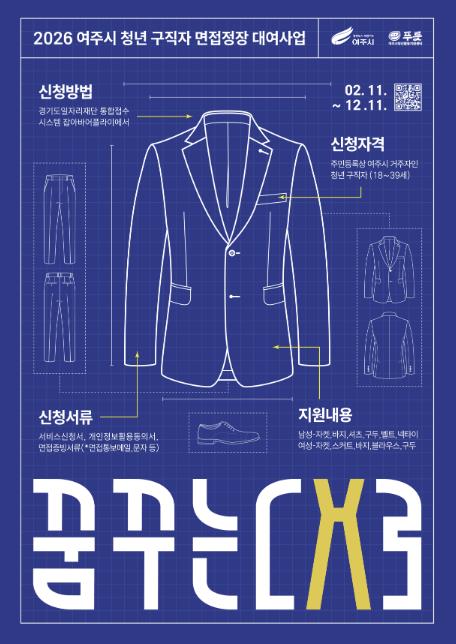 여주시 ‘꿈꾸는대로’ 면접정장 대여사업은 청년 실업률 증가 및 구직활동기간 장기화에 따른 청년들의 경제적 부담 해소에 기여하고자 2021년도부터 6년째 지속하고 있는 구직활동촉진 사업의 일환으로 18세~39세 청년이면 누구나(등본 상 여주시 거주자에 한함) 신청 가능하며, 사업기간동안(2026. 2. 11. ~ 12. 11. *예산소진시까지) 무료로 서비스를 이용할 수 있다.