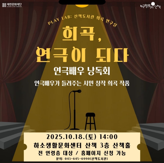 '희곡, 연극이 되다' 는 산책도서관 상주작가로 선정된 박주리 작가의 문학프로그램인 ‘두 번째 한여름 밤의 희곡’에 참여한 시민 수강생들의 창작 희곡 작품 중 2개의 작품을 선정해 지역 연극배우들의 낭독회로 이뤄진 프로그램이다. 도서관과 문학작가·시민·지역예술인 간 협업체계를 구축하여 새로운 문화예술을 창작해 간다는 의미를 더했다.