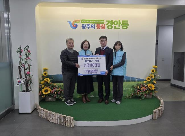 한상흠·이정한 경안동 지역사회보장협의체 공동위원장은 “매년 변함없이 나눔을 실천해 주시는 국민건강보험공단 경기광주지사에 깊이 감사드린다”며 “기탁된 성금은 2026년 취약계층을 위한 사랑의 안경 지원 사업에 소중하게 사용하겠다”고 말했다.
