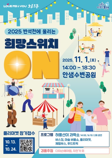 정용래 유성구청장은 “가을 정취 속에서 주민이 함께 웃고 소통하는 축제의 장이 되길 바란다”라며 “앞으로도 주민이 주도적으로 참여하고 즐길 수 있는 지역 문화 행사를 확대하겠다”라고 말했다.