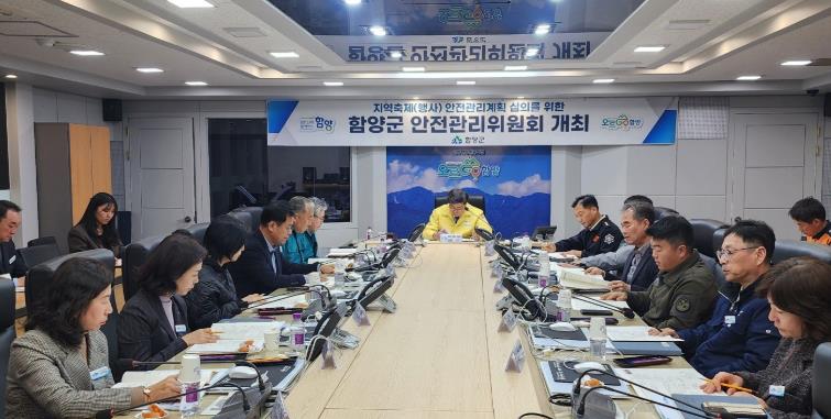 함양군 안전관리위원회는 군수를 위원장으로 경찰서, 소방서, 군부대, 교육지원청 등 총 14명의 위원으로 구성되어 있으며, 재난 및 안전관리 정책에 대한 심의와 조정 기능을 수행하고 있다.