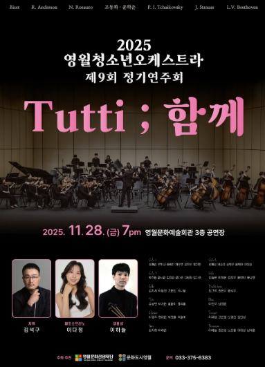 올해 정기연주회에는 지휘자 김석구, 메조소프라노 이다정, 마림바 연주자 이하늘(영월고등학교)이 함께하며, 단원들의 성장한 연주 역량을 선보인다. 특히 제천청소년오케스트라 일부 단원과의 교류 연주가 마련되어 두 지역 청소년이 음악적 경험을 공유하는 의미 있는 무대가 될 예정이다.