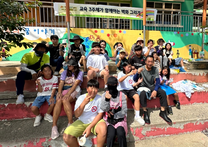 시티트리뷴 - 제주도교육청 추자초, 개교 100주년 기념 학생·보호자·교사가 함께하는 벽화 그리기 행사 진행