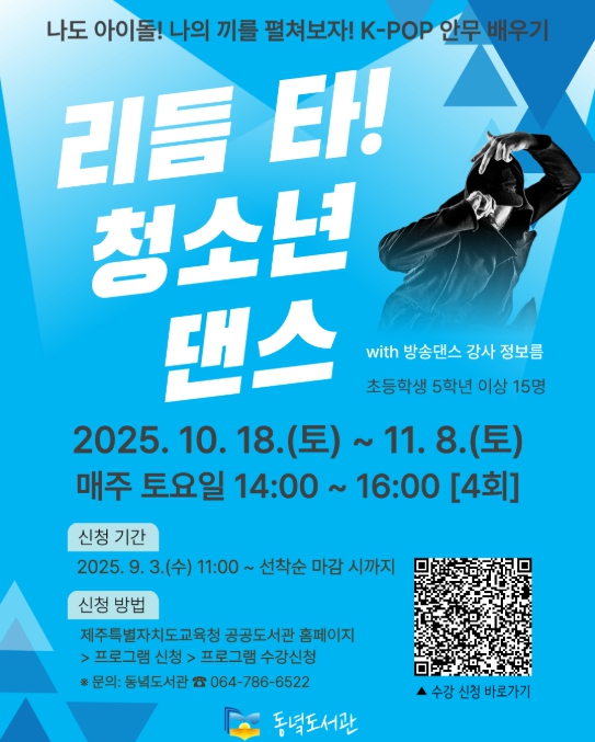 방송댄스 전문가 정보름 강사의 지도 아래 아이돌 안무인 투모로우바이투게더‘뷰티풀 스트레인저(Beautiful Strangers)’와 전소미 ‘엑스트라(Extra)’ 등을 배우고 마지막 회차에 완성된 안무 영상 촬영도 진행하는 이번 프로그램은, 춤에 관심이 있거나 스트레스 해소를 원하는 청소년들에게 좋은 기회가 될 것으로 기대된다.