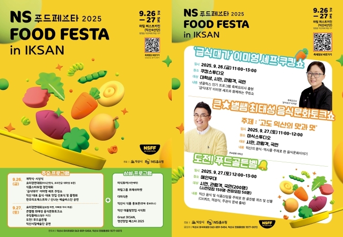 익산시는 'NS푸드페스타 2025 in 익산'이 오는 26~27일 익산 제4일반산업단지 하림 퍼스트키친에서 개최된다고 16일 밝혔다.