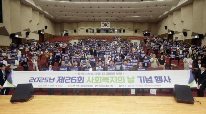 ‘함께 나누는 마음, 더 따뜻한 부천’을 슬로건으로 한 이번 기념식에는 부천시 사회복지 현장 종사자와 부천시 사회복지 공무원 등 350여 명이 참석해 사회복지의 날을 기념하고, 부천시 사회복지의 역할과 방향을 함께 나누는 시간을 가졌다.
