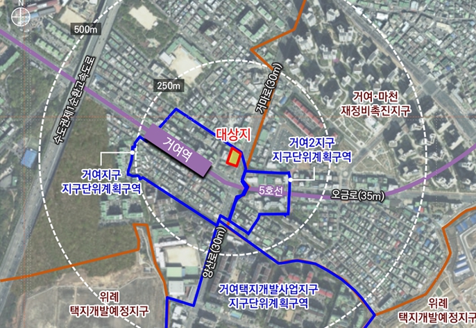 대상지는 5호선 거여역 2번 출구에 인접한 역세권 부지로, 양호한 입지 여건에도 불구하고 2022년 말 기존 건축물 철거 후 현재까지 나대지로 방치되고 있어 정비가 시급한 지역이었다.