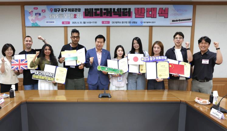 류규하 중구청장은 “홍보단의 활발한 활동을 통해 ‘의료·관광·사람’을 연결하는 글로벌 홍보 네트워크가 만들어지길 기대한다”며, “앞으로도 관광특구와 연계해 더 많은 외국인들이 찾는 대구 중구를 만들도록 최선을 다하겠다”고 말했다.