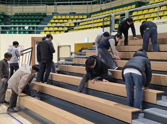 - 1부 시설 점검: 마루바닥의 평탄성 및 가변석 구동계 유격·고정 상태 정밀 확인