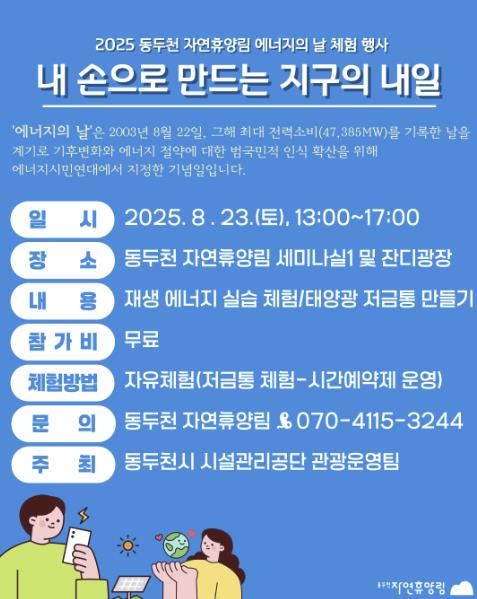 행사는 자연휴양림 세미나실과 잔디광장에서 열리며, 적정기술 교육기관인 ‘마을기술센터 핸즈’와 협력해 운영된다.