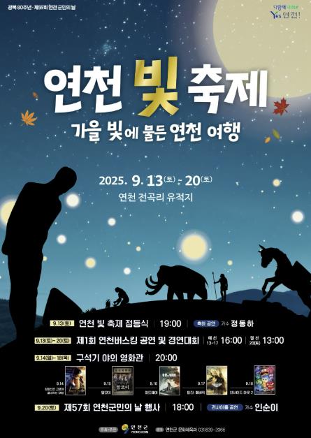 연천군 관계자는 “광복 80주년을 맞아 마련한 이번 연천 빛 축제는 과거와 현재, 미래를 잇는 특별한 문화축제가 될 것”이라며 “군민과 방문객 모두가 함께 참여해 잊지 못할 추억을 만들기를 기대한다”고 말했다.