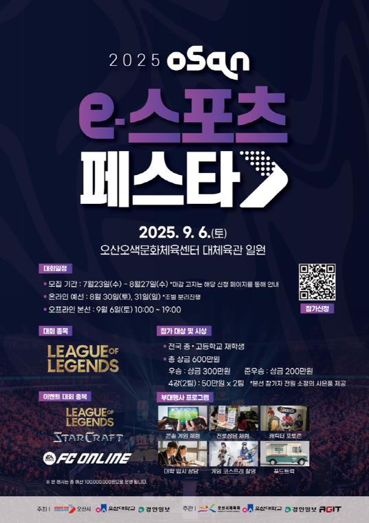 이권재 오산시장은 “e스포츠는 단순한 여가를 넘어 세대를 잇는 새로운 문화이자 스포츠”라며 “이번 대회를 통해 많은 시민들이 함께 즐기고 소통하며 특별한 경험을 만들길 바란다”고 전했다.