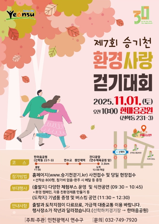 연수구 관계자는 “물과 생명이 흐르는 도심 속 휴식처인 승기천을 많은 주민이 더 즐겨 찾길 바라며, 승기천이 가족·친구·연인과 행복한 시간을 보내는 힐링 공간으로 거듭날 수 있도록 다양한 행사 운영과 생태환경 관리에 계속 노력할 것”이라고 말했다.