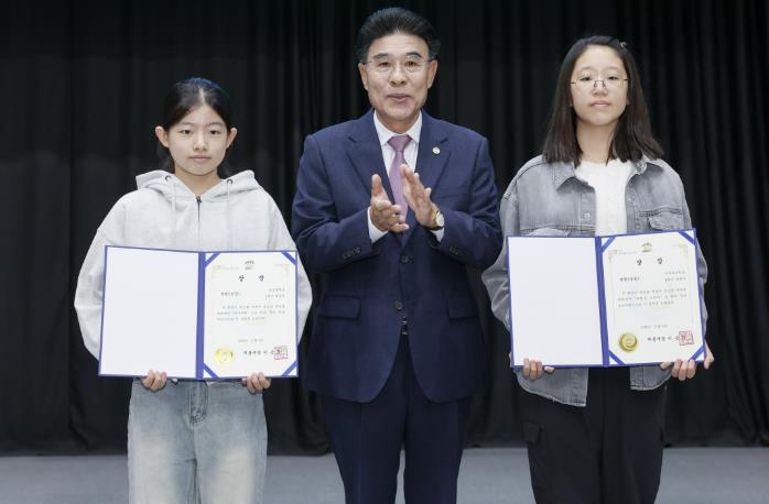 총 42명의 학생이 수상의 영예를 안았으며, 운문 부문 장원에는 두마초등학교 6학년 전윤아 학생의'여행을 그리다', 산문 부문 장원에는 용남중학교 1학년 최범비 학생의'바다여행'이 선정됐다.
