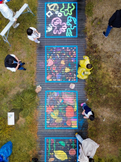 ‘후진항 감성길 분필 낙서 페스타’는 바다 감성길 조성 프로젝트의 일환으로 진행된 주민참여형 예술 프로그램으로, 데크길이 캔버스가 되는 하루였다.