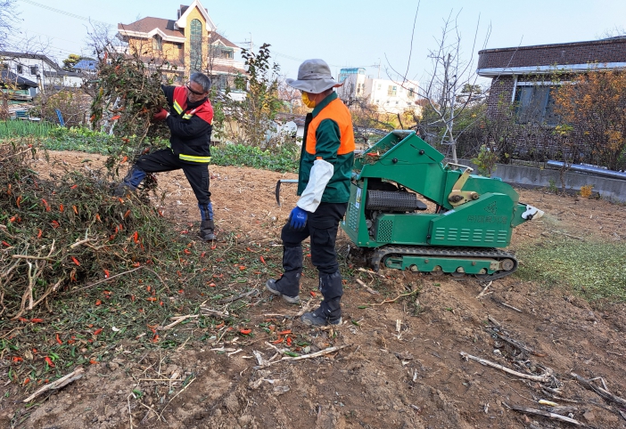 군은 파쇄지원단(7명 2개조)을 구성해 마을별로 직접 방문해 현장 파쇄를 진행하고 있으며, 산림 연접지 농가와 고령자 등 취약계층을 우선 지원하고 있다. 11월 13일 기준 총 100농가가 신청했으며, 현재까지 20농가(61,215㎡)에서 파쇄작업이 완료됐다.