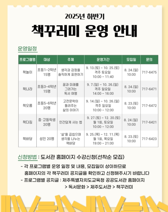 모집 기간과 세부 일정 등 프로그램 관련 사항은 제주특별자치도교육청 공공도서관 누리집 ‘공지사항’에 안내되어 있으며 신청은 오는 23일부터 누리집을 통해 접수할 수 있다.