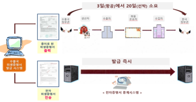 이번 이행약정 체결에 따라 그간 종이로 제출하던 위생증명서를 전자증명서로 제출할 수 있도록 블록체인 기술을 활용한 전자위생증명서 송수신 시스템을 구축‧연계한다.