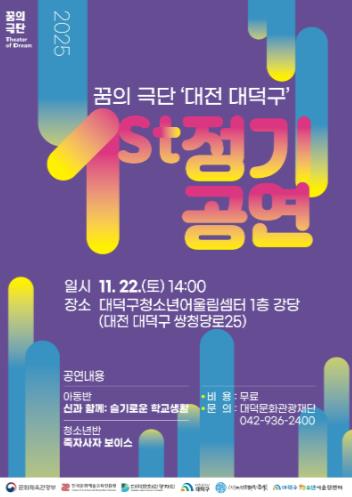 이번 정기공연은 올해 공모로 선정된 ‘2025 꿈의 극단’ 운영사업의 성과를 지역과 나누는 자리로, 향후 5개년 추진이 확정된 문화예술 교육사업의 첫 성과물이라는 점에서 의미가 크다.