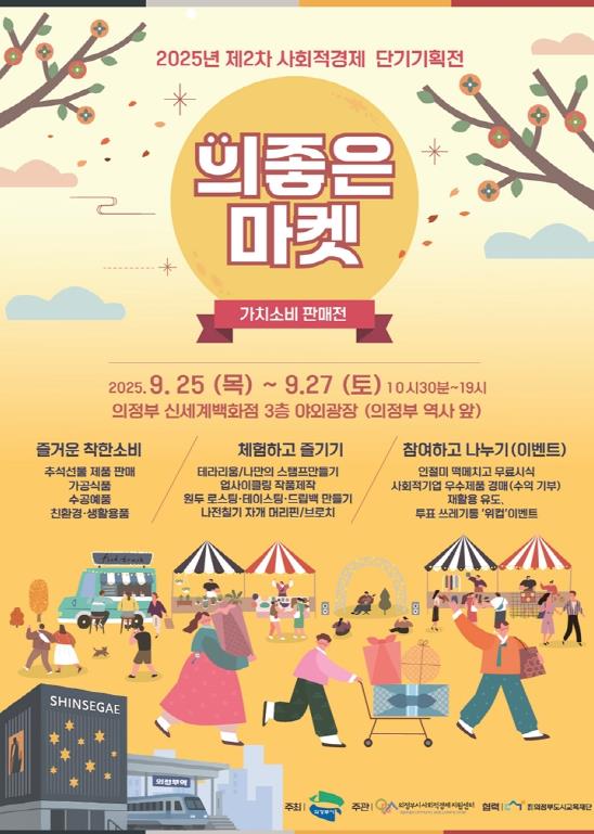 이번 기획전은 사회적경제기업의 다양한 제품을 시민들에게 선보이고, 체험과 이벤트를 통해 사회적가치에 대한 인식을 넓히기 위해 마련됐다. 시는 의정부 도시교육재단과 협력해 싱싱상생이음 ‘로컬푸드 마켓’을 함께 운영하며, 시민들이 더욱 풍성하게 즐길 수 있는 장을 제공한다.