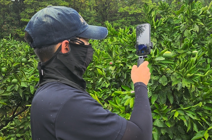 스마트폰으로 감귤나무를 촬영해 이미지를 플랫폼에 업로드하면 약 40분 만에 3차원(3D) 모델이 생성되고, 인공지능(AI) 분석을 통해 열매 수와 크기 등이 자동으로 산출된다.