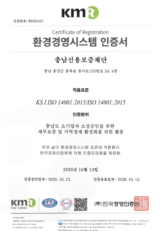 조소행 이사장은 “재단이 추진해 온 친환경·탄소중립 전환과 자원효율 경영의 수준을 국제표준으로 검증받았다”며 “앞으로 그린오피스, 친환경 조달, 에너지·소모품 절감, 폐기물 최소화를 한층 고도화하고, 보증·컨설팅·교육 등 지역 소상공인 지원 전 과정에 친환경 경영 원칙을 내재화하겠다”고 밝혔다.