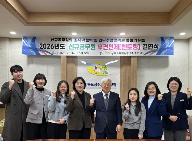황금옥 행정지원과장은 “후견인제를 통하여 멘토인 선배 공무원은 업무 노하우와 다양한 지식을 전달하고, 멘티인 신규 공무원은 적극적인 배움의 자세로 공직 적응력을 키워 배움이 삶의 힘이 되는 성주교육 실현에 적극 노력해 주길 바란다.”며 당부했다.