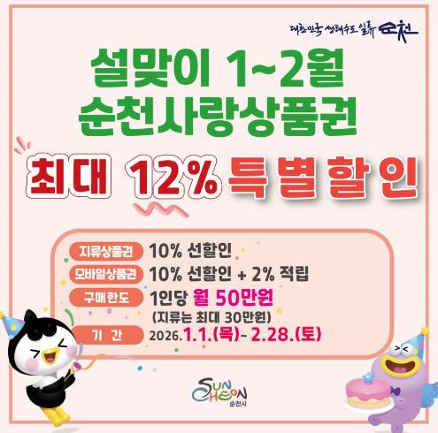 한편, 지류 순천사랑상품권은 순천관내 농협을 통해 구매할 수 있으며, 모바일 상품권은 ‘지역상품권 chak(착)’ 앱을 통해 충전 및 사용할 수 있다.
