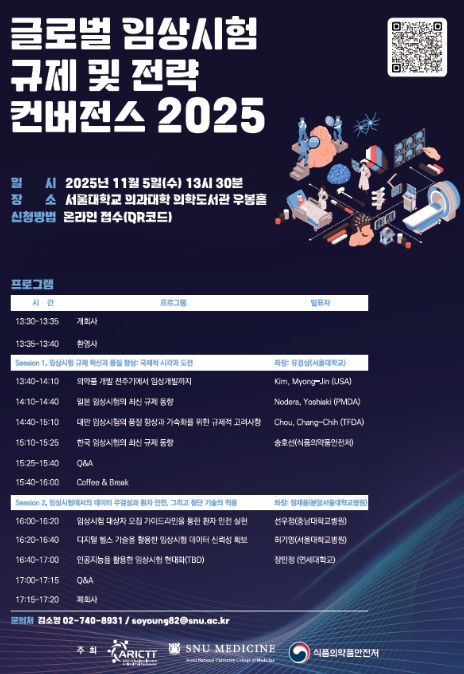 이번 심포지엄에는 미국, 일본, 대만의 규제당국자가 참석하여 글로벌 최신 임상시험 규제 동향을 공유하고, 국내 학계·기관 전문가들과 함께 디지털 헬스기술, 인공지능 등 첨단기술을 활용한 임상시험 데이터 신뢰성 확보 및 현대화 전략 등을 논의한다.