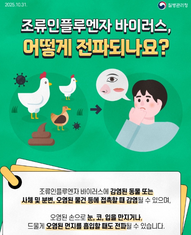 보건소는 AI 인체감염을 예방하기 위해 ▲철새도래지 방문 자제 ▲야생 조류 및 가금류 등과의 불필요한 접촉 피하기 ▲손 씻기 등 개인위생 철저 ▲손으로 눈·코·입 만지지 않기 ▲닭·오리·계란 등 75℃ 이상에서 5분 이상 충분히 조리하기 등 기본 수칙 준수를 당부했다.