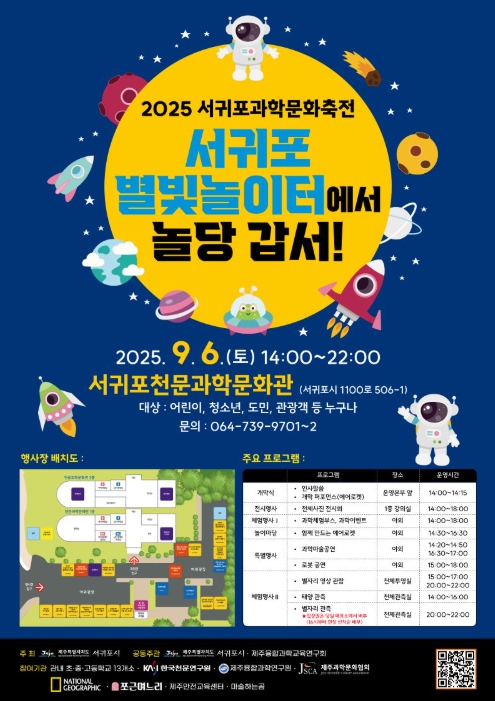 특히, 서귀포시는 축전을 통해 청소년들이 우주과학의 꿈을 키우고 새로운 도전을 향해 나아가길 바라는 마음으로 매년 행사를 마련하고 있으며, 과학을 매개로 배움과 즐거움이 함께하는 장이 될 것으로 기대하고 있다.