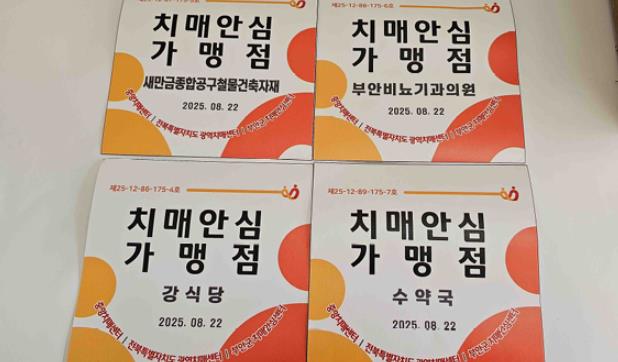 치매안심가맹점 신청은 사업자등록번호 가운데 01~79, 90~99인 부안 관내 개인사업 자라면 누구나 가능하며 관련 문의는 부안군 치매안심센터로 하면 된다.
