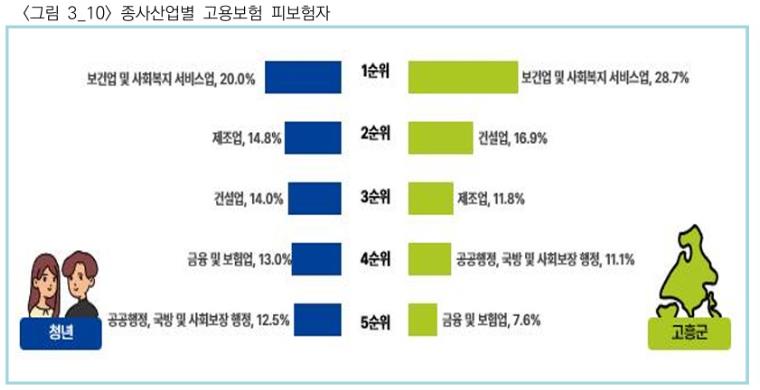 일자리 관련 통계 결과를 보면, ‘2024년 하반기 기준 청년 고용률은 81%로 나타났으며, 주요 종사산업은 보건 및 사회복지서비스업이 20%로 가장 높았다.