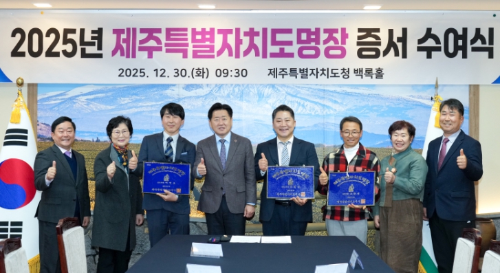 오영훈 지사는 “선정된 3명의 명장을 비롯해 제주의 빛나는 기술인들이 함께 제주를 더욱 밝히길 바란다”며 “명장 여러분이 제주의 가치를 세계에 알리는 데 큰 역할을 해 주길 기대한다”고 말했다.