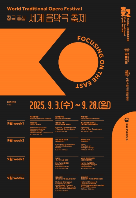 국립극장을 중심으로 국립극장 제작 공연 4편과 해외 초청작 3편, 국내 초청작 2편을 선보이는 올해 행사는 경주, 광주, 대전, 전주 등 전국 주요 국공립공연장에서 열리는 창극, 판소리 공연과도 연계해 진행한다.