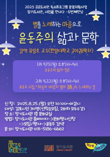 한편, 김포시는 2025년 대한민국 독서대전 김포 본행사를 오는 9월 19일부터 21일까지 장기도서관과 한강중앙공원 일대에서 진행한다.