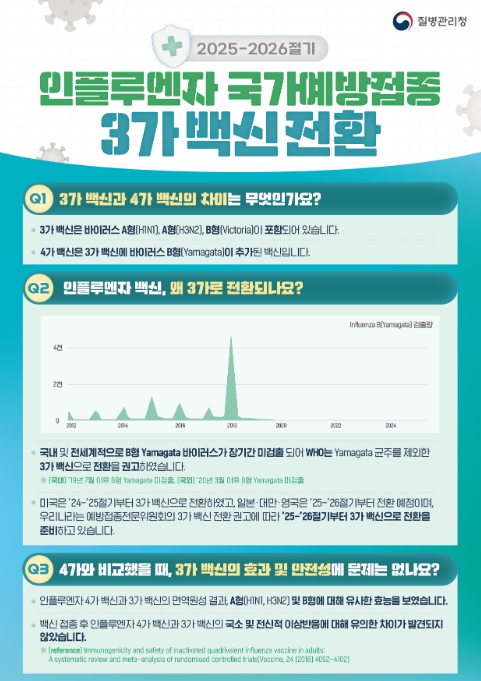 2025-2026절기 인플루엔자 국가예방접종은 세계보건기구(WHO)의 권고사항과 예방접종전문위원회 심의에 따라 기존 4가 백신에서 3가 백신으로 전환하여 시행된다.