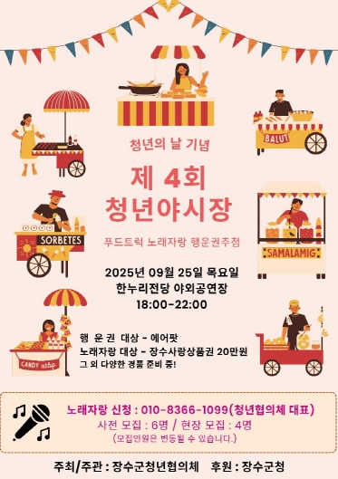 제4회 장수 청년 야시장은 단순한 장터를 넘어 청년과 군민이 함께 어울리며 지역 공동체의 활력과 새로운 가능성을 확인하는 의미 있는 축제로 자리매김할 전망이다.