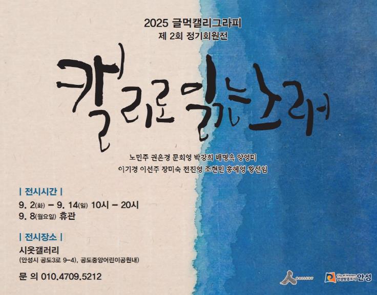 글먹캘리그라피 동아리는 “노랫말 속에 스며 있는 따뜻한 감정을 캘리그라피로 전하고 싶다”며 “전시 준비에 함께 애써주신 12명의 작가님들께 깊이 감사드린다”고 전했다.