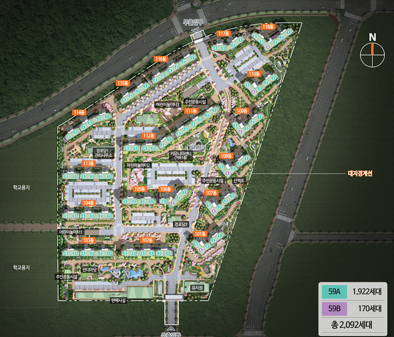 특히, 조경은 삼성 에버랜드 조경팀이 참여해 계절마다 변화하는 친환경 정원형 단지를 구현했다.