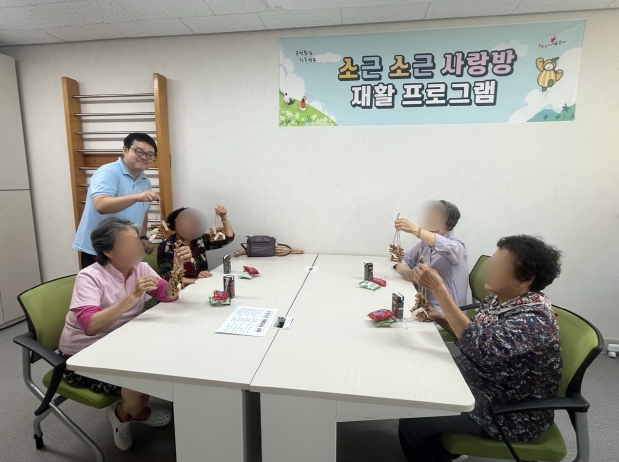 소근소근 사랑방 재활 프로그램은 수부 움직임의 정교함을 향상시키고 협응력을 기르기 위해 만든 프로그램으로 실생활에서 활용할 수 있는 도마 만들기, 모기퇴치 모빌 만들기, 우드 트레이 만들기, 석고 방향제 만들기, 공깃돌 만들기 등으로 구성되어 있다.