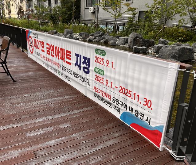 이번 지정에 따라 두 아파트는 2025년 11월 30일까지 3개월간 홍보 및 계도 기간을 거친 뒤, 2025년 12월 1일부터는 금연구역 내 흡연 적발 시 국민건강증진법에 따라 5만 원의 과태료가 부과된다.