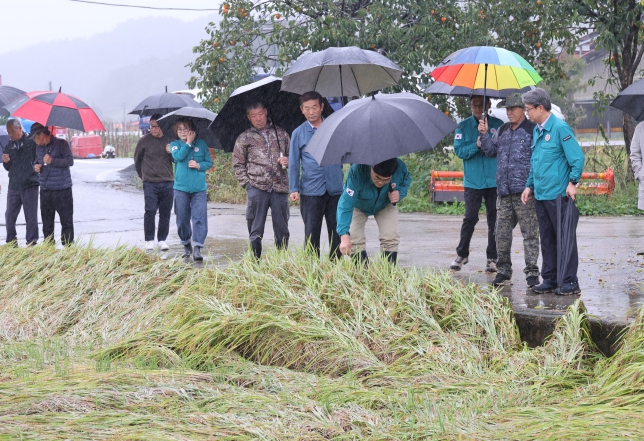 관내 벼 재배면적은 총 538ha로, 이 가운데 미수확 면적이 328ha(61%)에 달하며 도복 피해가 23.6ha, 수발아 피해 25ha, 깨씨무늬병 피해가 40ha로 추정된다.
