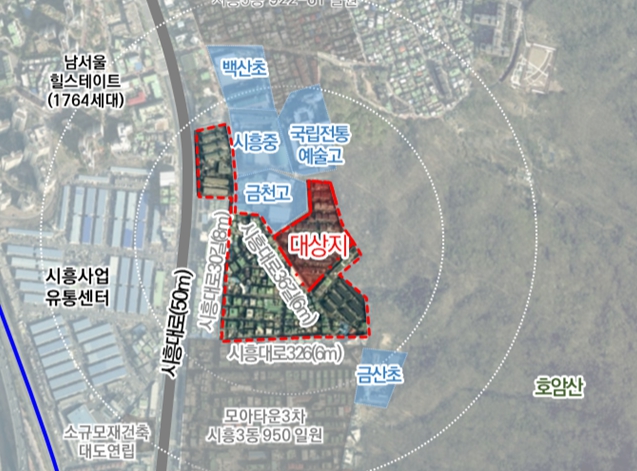 금천구 시흥3동 1005번지 일대는 7개동 규모로 공동주택 총 473세대(임대 95세대 포함)를 공급할 예정이다. 전체 세대수 20% 이상 임대주택 건설에 따른 용적률 완화로 사업성을 높였다. 노후 건축물이 밀집된 구릉지형으로 재개발이 어려웠던 이 지역은 이번 심의를 통과해 인접 모아주택(금천구 시흥동 943 일대)과 동시 개발이 가능하게 됐다.