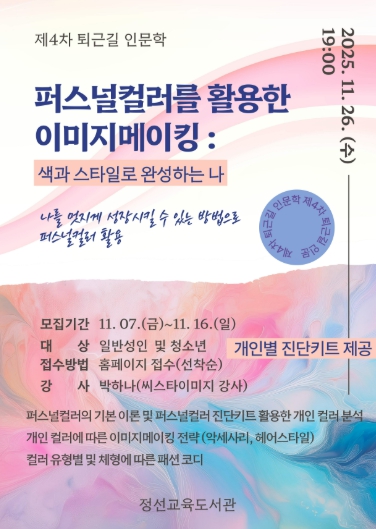 권예순 관장은 “최근에는 자신의 퍼스널컬러에 맞춘 화장법이나 액세서리 선택이 일상화되고 있다”며 “정선군민들도 이번 강의를 통해 자신에게 어울리는 색과 이미지메이킹 전략을 알아가는 유익한 시간이 되기를 바란다”고 말했다.