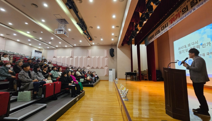 행사에는 춘천교육대학교 김태호 교수의 기조강연(인공지능(AI) 시대, 왜 다시 읽기와 문해력인가?)이 진행됐으며, 현직 교사와 지역 활동가가 참여한 공감 토크콘서트가 이어졌다.