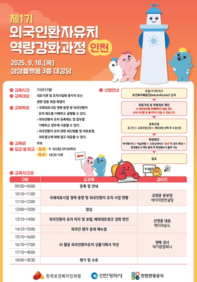 이번 교육은 외국인환자 유치 제도와 실무 역량을 종합적으로 강화하고, 국제의료관광 정책 변화와 환자 맞춤형 서비스 수요 확대에 대응하기 위해 마련됐다. 인천은 공항과 항만을 모두 갖춘 도시로, 글로벌 의료관광 허브로 도약하기 위해 최신 트렌드를 반영한 종사자 교육의 중요성이 커지고 있다.