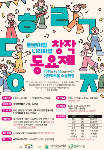 행사 관계자는 “한글과 동요의 아름다움을 새롭게 조명하는 이번 동요제를 통해 어린이와 시민 모두가 즐길 수 있는 뜻깊은 자리가 될 것”이라고 밝혔다.