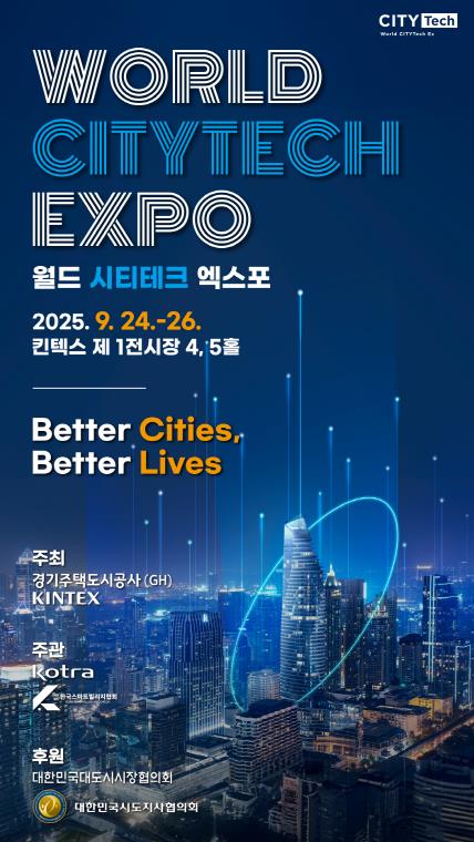 올해 처음 열리는 이번 엑스포는 ‘Better Cities, Better Life’를 슬로건으로, AI 기반 도시 기술 혁신과 서비스를 한눈에 살펴볼 수 있는 국내 최대 규모의 도시 기술 전시회다. 산·학·연·관이 참여하는 다채로운 콘퍼런스도 함께 열려, 첨단 도시기술의 현재와 미래를 공유하고 협력의 장을 마련할 예정이다.